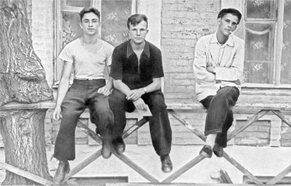 Ю. Гагарин (в центре) – учащийся Саратовского индустриального техникума с друзьями