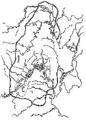 Рис. 2. Карта распространения среднестоговской культуры [2, с. 24–25]. Пунктиром обведена приблизительная территория самых ранних памятников – квитянского этапа (I-а), в Надпорожье и Среднем Поднепровье [2, с. 123].