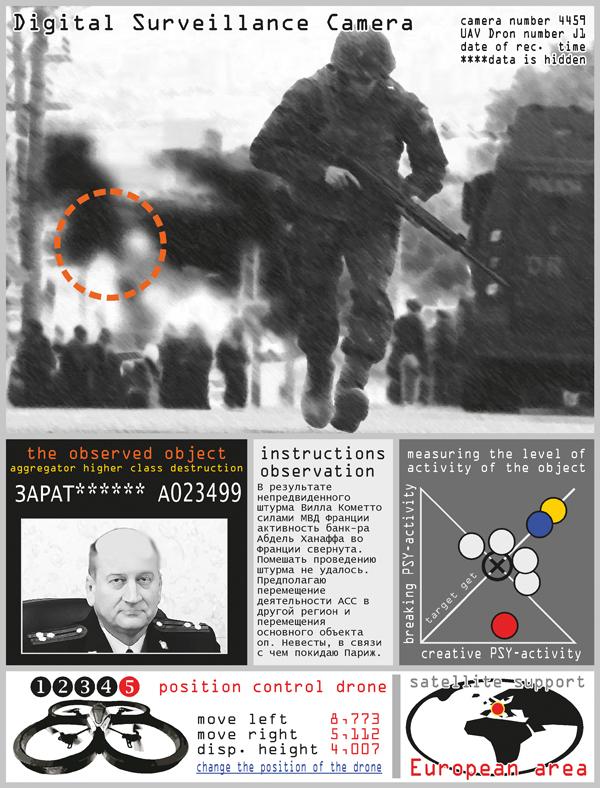 «…Волнения в Париже явились, как считает обозреватель газеты „Moniteur“ Огюст Клоб, показателем полного бессилия нынешнего правительства левых. Неуклюжая попытка осуществить штурм одной из вилл в районе Малакоф, принадлежащей арабской диаспоре, под предлогом розыска членов международной террористической организации „Аль-Каида“, вылилась в кровавую бойню… По словам представителя Департамента полиции господина Неро, полицейские были „спровоцированы“, но это не меняет дела. В настоящий момент волнения перекинулись в пригороды Парижа, в ряде кварталов сооружены баррикады… при этом мэр города, социалист Ги Монтар, отказывается вводить в столице комендантский час, выражая надежду на скорое прекращение беспорядков…»