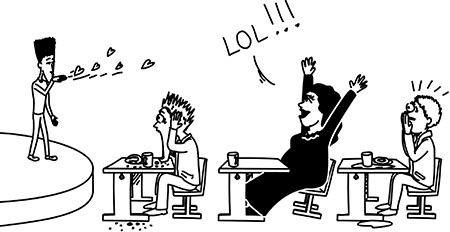 И вот, выдав последние слова типа «и-и-и хэй, и-и-и хэй», Петька громко хлопнул в ладоши и артистично развёл руки в стороны, отвесив поклон публике.