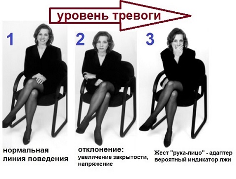 В данном случае проявились и невербальные (неречевые) симптомы поведения: если кандидат вместо короткого ответа смотрит на пол или потолок, меняет позу в кресле, например, царапает ногу, то это невербальные индикаторы лжи. Но при условии, если такое поведение вызвано вопросом, а не тем, что просто зачесалась нога.