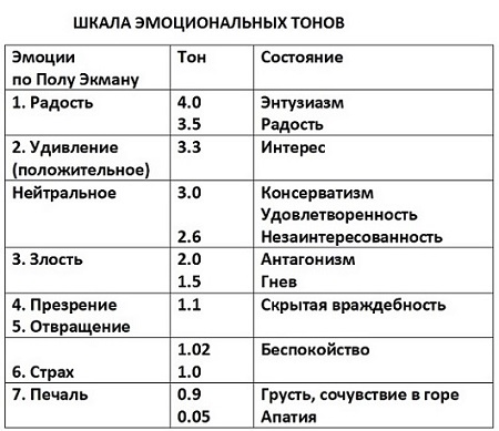 д) Маркирование эмоций (еmotion labeling). Для данного приема полезно изучить техники определения эмоций Пола Экмана. Принято изучать базовые эмоции по тренажёру, компьютерной игре, предусмотренной в третьем упражнении на тренинге.