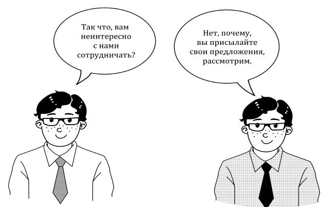 – Желание сбить с толку. В этом случае получается скорее имитация переговорного процесса: оппоненты умышленно его затягивают, понимая, что время – их союзник. Здесь на каждое свое предложение вы будете слышать «может быть», «нам надо посоветоваться».