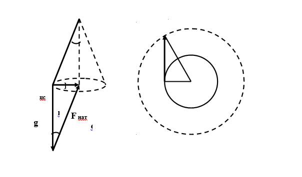 Исходя из треугольника сил, действующих на вращающийся груз, имеем величину центростремительной силы