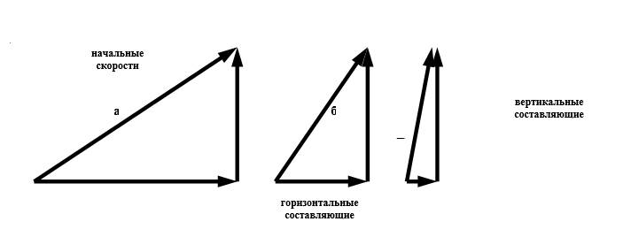 Рис. Схема векторного разложения исходной скорости на горизонтальную и вертикальную составляющие.