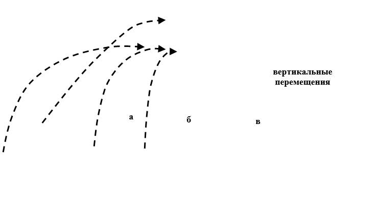 Можно видеть, что вертикальные составляющие во всех трех вариантах одинаковы. Различие скоростей определяется горизонтальной ситуацией. Горизонтальные перемещения представлены а рис.