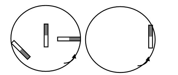 Имеются три детали, по-разному расположенные на вращающейся платформе. В результате резкого торможения платформы детали теряют сцепление и начинают двигаться по инерции. Будут ли детали вращаться вокруг собственной оси? Какая из них быстрее?