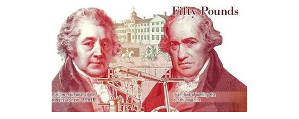 4. Первая встреча Мэтью Болтона и Джеймса Уатта произошла в начале 1760-х годов в Глазго и стала точкой перелома в истории паровых машин. Мэтью Болтон стал единственным из бизнесменов, кто «попал на деньги» в прямом смысле. Портреты изобретателя и предпринимателя были помещены на 50-фунтовой купюре.