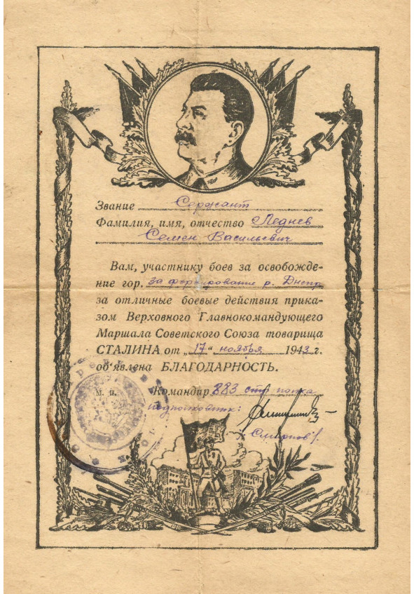 БОЕВОЙ ПУТЬ ЛЕДНЕВА СЕМЁНА ВАСИЛЬЕВИЧА.