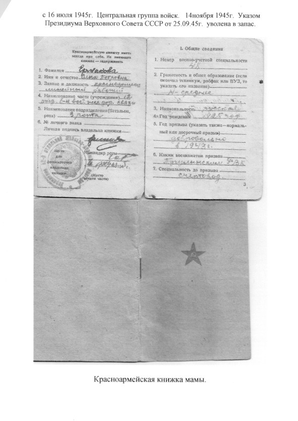 Леднёва Ольга Петровна, радиотелеграфист, на фронт ушла добровольно в августе 1943года, в возрасте 18 лет. Долго добивала такого разрешения, человек редкого мужества и обаяния. В нашей памяти осталась как добрый, улыбчивый человек при встрече в любых жизненных обстоятельствах. Вырастила троих прекрасных сыновей. В их семьях царят добрые отношения и взаимное уважение, воспитанные Ольгой Петровной и строгим отцом, Семёном Васильевичем Леднёвым.