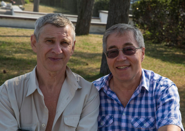 Мои школьные друзья по далекому, но любимому Зауралью, Алексндр Деревнчук и Володя Проскурнин. Их встреча в Екатеринбурге в 2020 году.