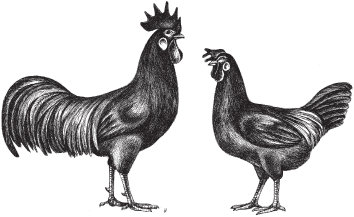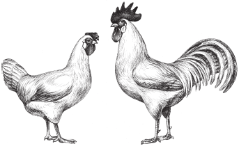 Возраст курицы по внешнему виду не определяем, но у петухов выявлена закономерность величины шпор от возраста – к годичному возрасту длина шпоры достигает 1–1,5 см, ко второму году – 2 см и более, к третьему – 4, пятому-шестому – более 6 см.