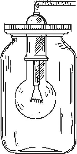 Необходимо взять стеклянную литровую банку с полиэтиленовой крышкой. В крышке прорезать отверстие по размеру резьбы электропатрона. Патрон нужно раскрутить и между верхней и нижней его частями вставить крышку, а затем снова его скрутить. Затем нужно ввинтить лампочку на 15–25 Вт, накрыть крышкой с лампой банку и включить в сеть.