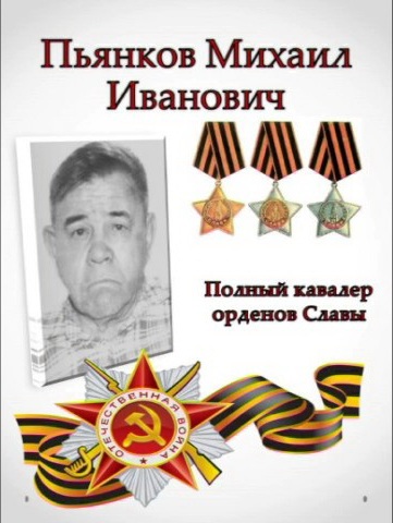 Пьянков Михаил Иванович – командир отделения взвода пешей разведки 85-го стрелкового полка (325-я стрелковая дивизия, 43-я армия, Земландская группа войск) старший сержант – на момент последнего представления к награждению орденом Славы.