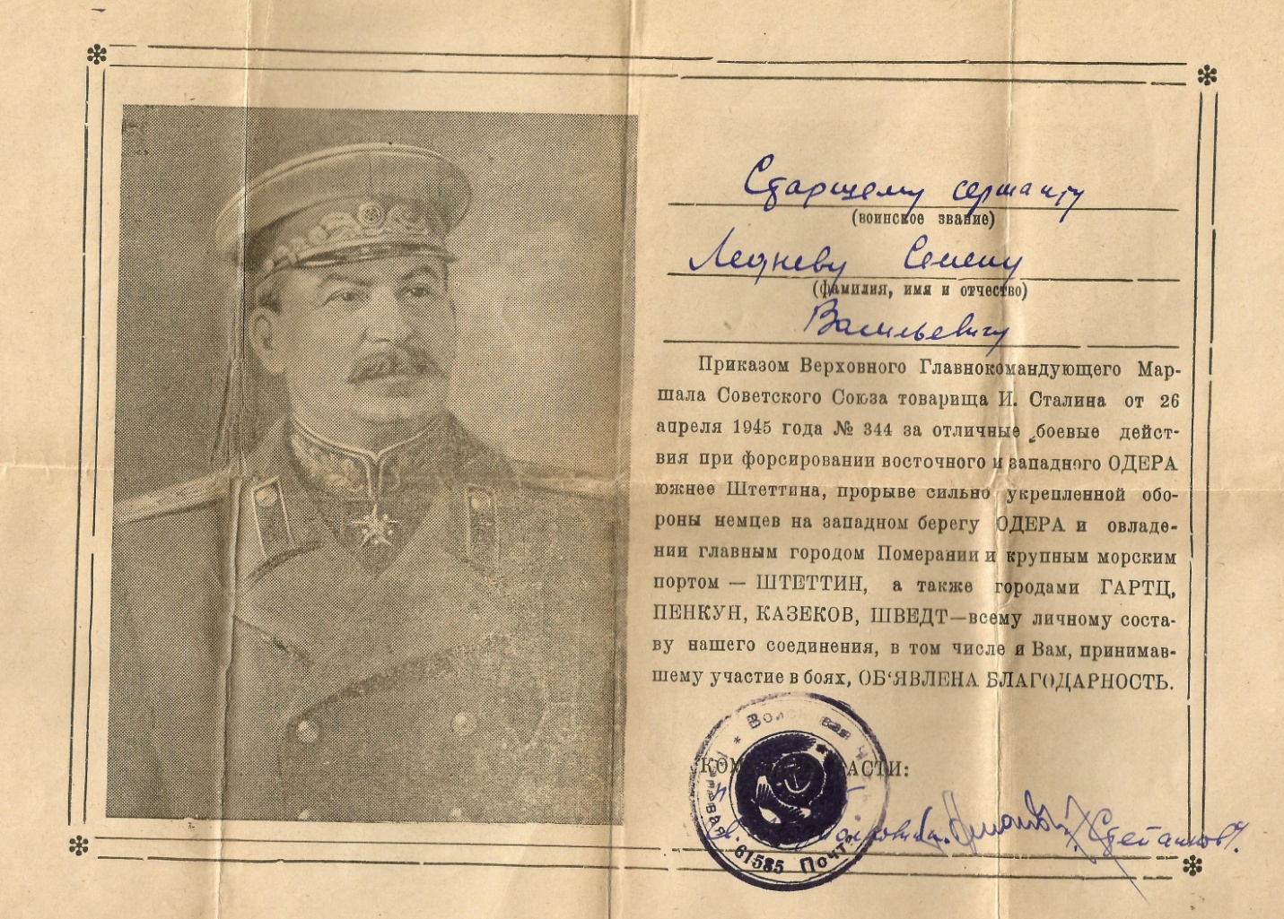 Соколов Александр Аверьянович, 1926 г.р., сержант; с 1944 г. по 1945 г. надсмотрщик 2-ой ударной; награды: медали «За победу над Германией», «За взятие Кенигсберга», Юбилейные; ранений не имеет. Домашний адрес: ул. Октябрьская, 5а.