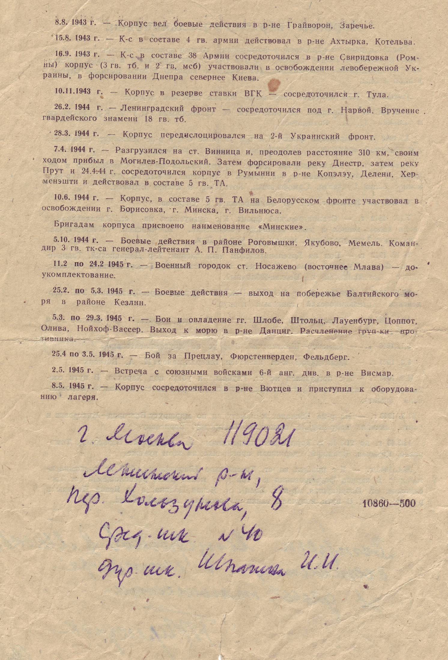 С сентября 1943го по 15.02.1944го – в составе 1го Белорусского фронта.