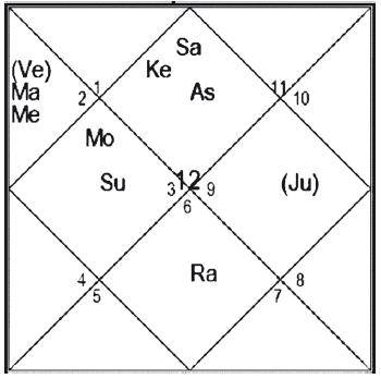 При транзите вредоносного Сатурна через знак расположения Луны (Близнецы) и 4-й дом в период Раху – Луна здоровье матери Тома резко ухудшилось, и к концу транзита она умерла (в ведической астрологии, как известно, прохождение Сатурна через знак расположения Луны может вызвать смерть родителей, а через 4-й дом – смерть матери). Для его хозяина и хозяйки это было непростое время из-за серьезных трудностей в семье (4-й дом и Луна означают хозяйку, а 10-й дом, принимавший аспект от транзитного Сатурна, означает хозяина; кроме того, хозяина символизирует еще и Солнце, находящееся в одном знаке с Луной).