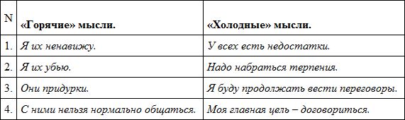 Нарисуйте таблицу в два столбика. В левый столбик запишите все «горячие» мысли. В правый столбик все «холодные» мысли.