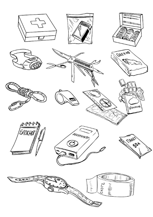 ВАЖНО! В экстренном случае, например, если вас настигла гроза или один из участников похода не может идти (порвался ботинок или получена травма), то аварийный набор будет незаменимым. При помощи скотча можно починить обувь, сделать стельки, зафиксировать шину из треккинговых палок или каркаса палатки, а также закрепить на себе изотермическое одеяло или “дождевик”, оставлять маркеры/метки на тропе и т. д. При помощи “паракорда”, дождевика или «космического одеяла» можно соорудить временный навес от дождя и ветра над собой или над пострадавшим. При помощи спичек и сухого горючего можно развести костёр даже из сырых дров. Даже если костёр невозможен, то на таблетках сухого спирта можно вскипятить кружку воды и попить горячего чая с калорийным батончиком.