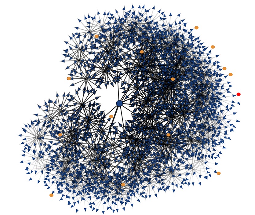 Рис. 2. Проблемное пространство. Синяя точка – исходная ситуация, красная – оптимальное решение, оранжевые точки – приемлемые решения