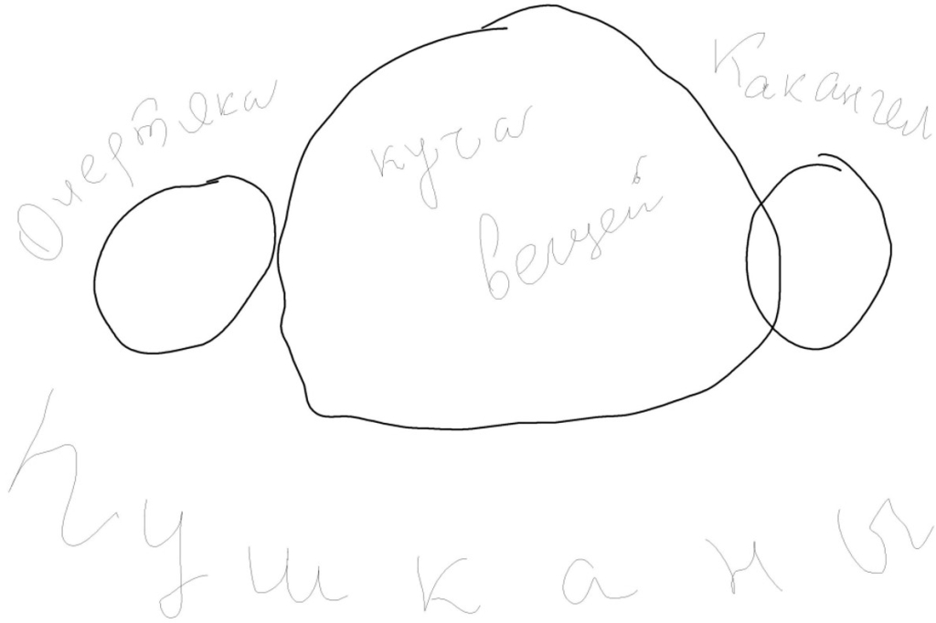 Сначала в центре листа расположилась куча вещей, а по бокам Очертяка с Какангелом.