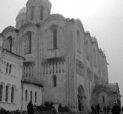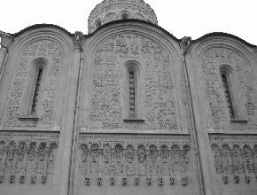 Одноглавый белокаменный Дмитриевский собор, увенчанный шлемовидным куполом на высоком цилиндрическом барабане с полукруглыми окнами, являет образец неповторимой самобытной древнерусской архитектуры,