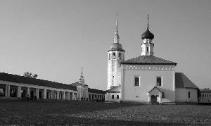 Суздаль. Суздаль был основан в 1024 г. на берегу реки Каменки. Здесь жили народы, образовавшиеся при смешении печорских племен и пришедших в 9 в. славян. При Владимире Мономахе начинается каменное строительство, а при его сыне Юрии Долгоруком город становится центром княжества, при Андрее Боголюбском переместившемся во Владимир. Сильно пострадав во время монгольского ига, Суздаль присоединяется к Москве в 1392 г. Город становится религиозным центром, епископский двор переводится на территорию кремля, на место бывших княжеских дворцов. К началу 20 века в городе насчитывались 33 приходские церкви – 30 каменных и 3 деревянных, составлявшие архитектурные ансамбли из зимней и летней церкви, объединенных колокольней.