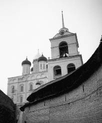 Псков. Город упоминается с 903 г., в его окрестностях родилась княгиня Ольга. Она переправляла людей через реку, во время переправы с ней познакомился князь Игорь и женился на ней. Ольга основала в городе первый собор – Троицкий. Центр города, кремль (Кром), расположен на берегу реки Великой при впадении в нее реки Псковы. Таким образом, образовался мыс, с двух сторон окруженный водой. Кремль окружается стенами из известняковых плит, город растет и опоясывается новыми кольцами стен – внутри кремля это Перси и стена Довмонтова города, затем следовали стены Среднего города, стена посадника Бориса и стена Ольгиного города, имевшая протяженность 9.5 км и 60 башен. На Псков часто нападали, но захвачен он был лишь однажды, из-за предательства, немцами, которые оккупировали его в 1240-42 г.г., и были вынуждены отступить после поражения на Чудском озере.