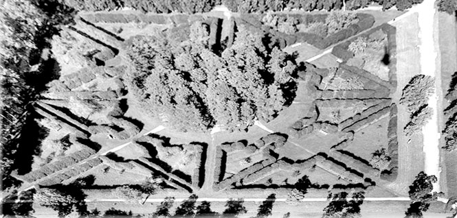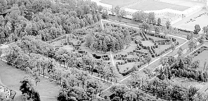 В-третьих, в 1748 г. началось обустройство самого Верхнего сада, который был выдержан в единственно возможном тогда французском регулярном парковом стиле. Автором проекта Верхнего сада, вероятно, был садовник Корнелиус Шрейдер[13], а непосредственно разбивал сад садовый подмастерье М. Кондаков и другие помощники знаменитого мастера. Тогда Верхний сад представлял собой квадрат со стороной в 400 саженей (280 метров), который был разделен крестообразно пересекающимися аллеями на четыре квадратных боскета. В результате квадрат Верхнего сада примыкал к квадрату Зверинца.