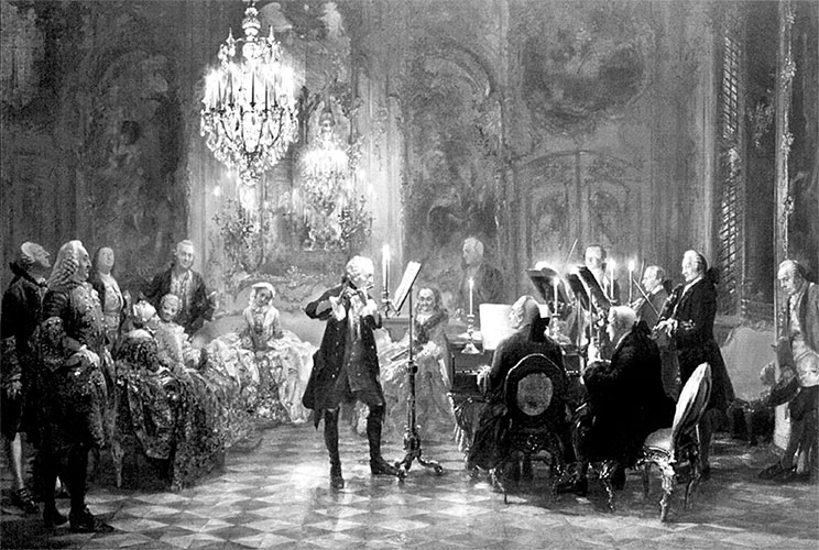 А. фон Менцелъ. Концерты в Сан-Суси. Фрагмент. Фридрих II играет на флейте