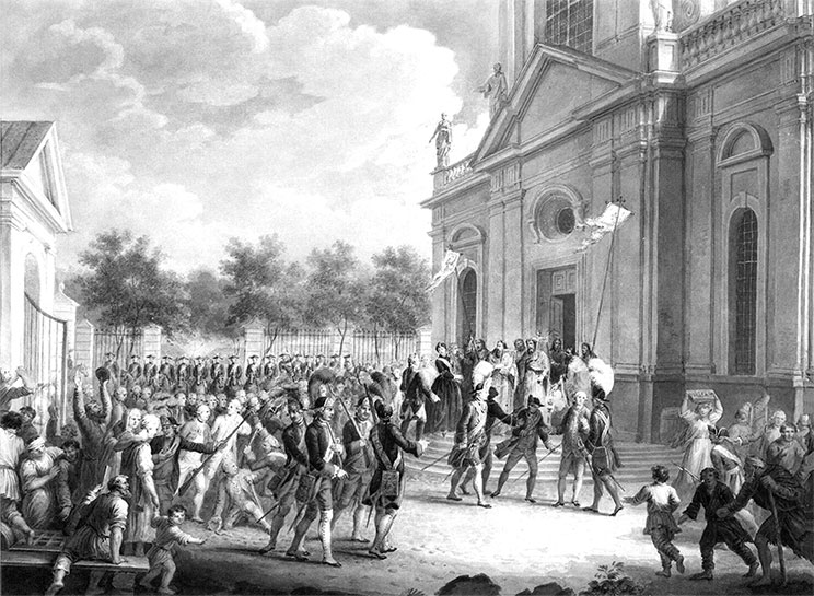 Екатерина II на ступенях Казанского собора 28 июня 1762 г.