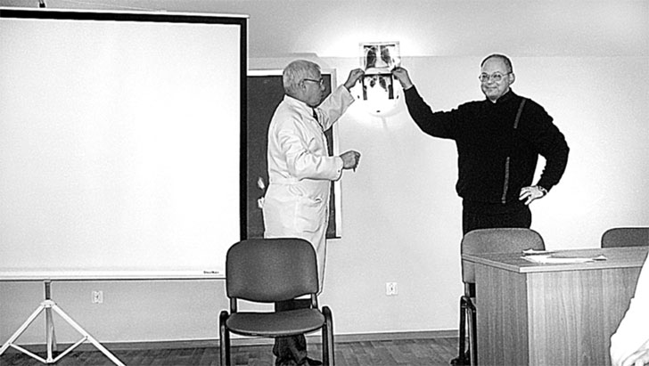 Проф. Б. Г. Лукичев и проф. И. В. Зимин на совместном заседании СНО кафедр пропедевтики внутренних болезней и истории Отечества ПСПбГМУ им. акад. И. П. Павлова