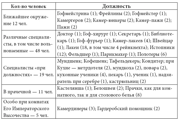 Александр I утвердил штат Двора Его Императорского Высочества Великого Князя Николая Павловича в количестве 147 штатных единиц. Структура должностных лиц была следующей[82]: