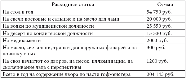 В этом же документе определялось финансирование, шедшее на различные статьи, связанные как с содержанием многочисленных обитателей Аничкова дворца, так и на различные хозяйственные дела: