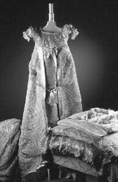 Процедура крещения ребенка – одна из отработанных придворных церемоний с четким, раз и навсегда определенным ритуалом. Естественно, на торжественную церемонию собиралось все наличное «семейство». Естественно, крещение обставлялось со всей возможной традиционной пышностью. Ребенка укладывали на подушку из золотой парчи и укрывали тяжелой золотой императорской мантией, подбитой горностаем. При этом крестильные рубашки потенциальных самодержцев, розовые у девочек и синие у мальчиков, бережно сохранялись. До нас дошла крестильная рубашка цесаревича Алексея, окрещенного в Петергофе летом 1904 г.