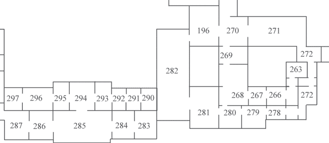 Трепетно относившийся к памяти отца, а, скорее всего, в пику матери, Павел I приказал сохранить в неприкосновенности кабинет Петра III (№ 279), мемориальный характер которого подчеркивал парадный портрет императора Петра III в дорогой золоченой раме. От этого Кабинета начинались личные покои Павла I: Уборная (№ 278), Опочивальня (№ 277), Угловой кабинет (№ 276), Большой кабинет (№ 275), Библиотека (№ 273–274). Все эти покои выходили окнами на Миллионную улицу и Дворцовую площадь[50].