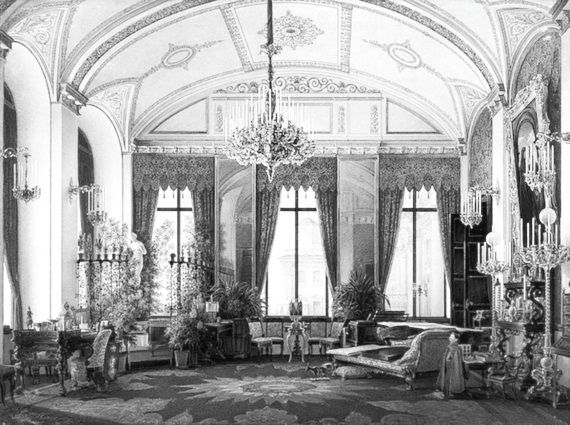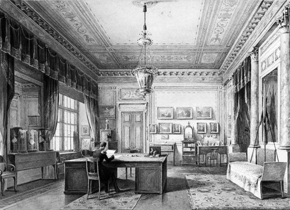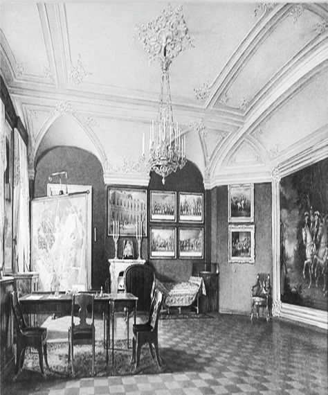 В начале 1840-х гг. обустраивали квартиру в Зимнем дворце для старшего сына Николая I, цесаревича Александра Николаевича, будущего Александра II. В числе комнат на его половине был оборудован и обязательный рабочий кабинет.