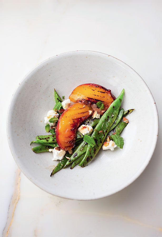 Персики и стручковая фасоль на гриле от Кэлвина