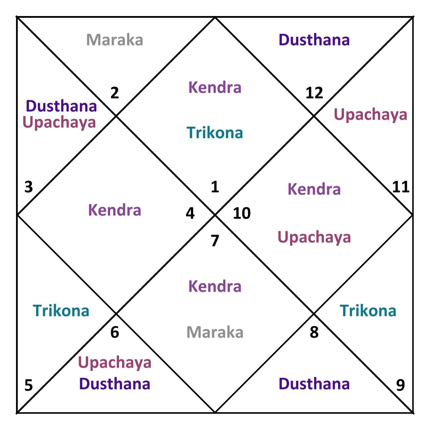 Upachaya (houses: 3, 6, 10, 11) – These are houses of growth. These houses are considered good for malefic planets because as the person matures, these houses gain a lot of strength. Even malefics like Saturn and Mars can soften their negative effects.