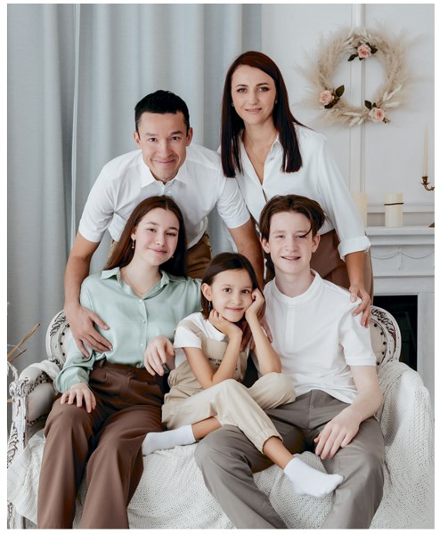 Я и моя семья: супруга Оксана, старшая дочь Алина, сын Тимур и младшая дочь Элина. Май 2023 г.