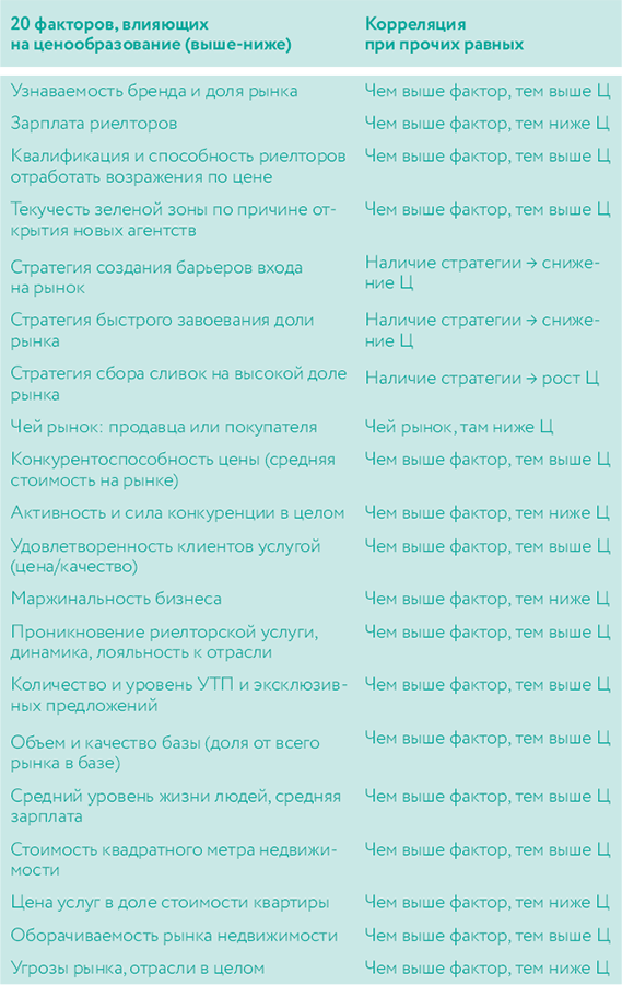 Таблица 2.2. Факторы, влияющие на ценообразование