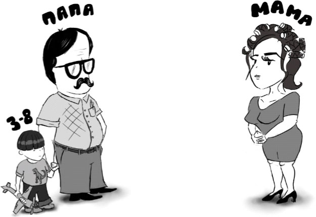 • о том, как влияют на становление мужчины и женщины мама и папа;