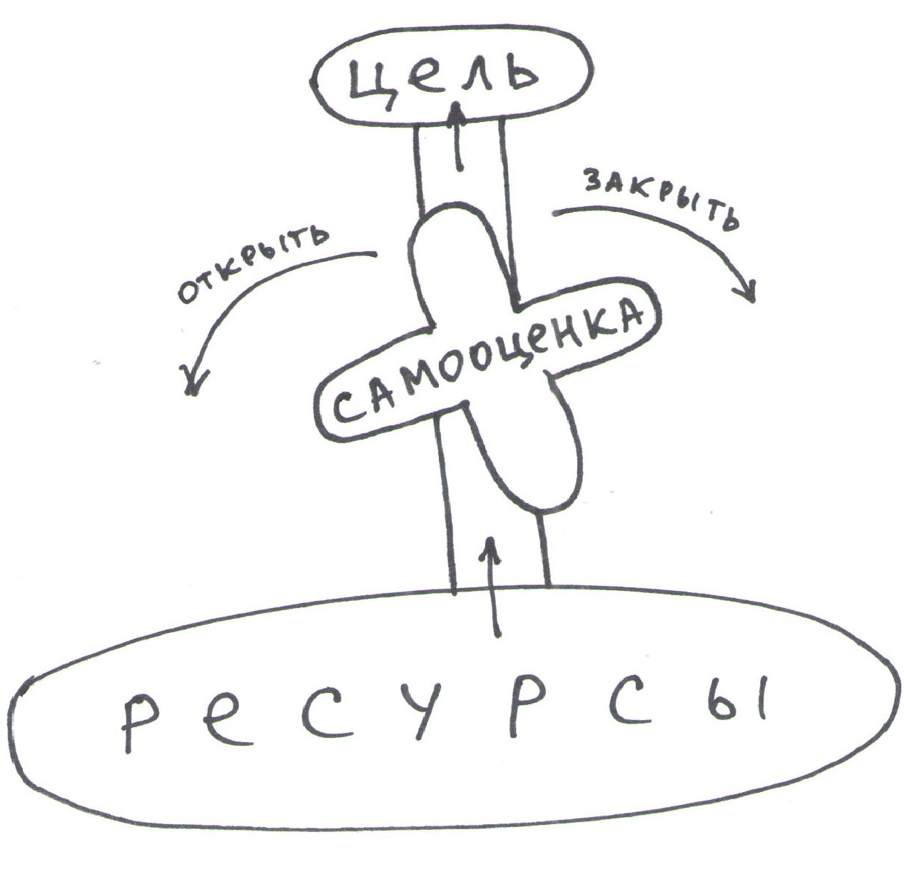 И позитивные мысли питают мою самооценку, "открывая" тот кран (что на рисунке) для связи с моими ресурсами, и … двигают меня в сторону цели!