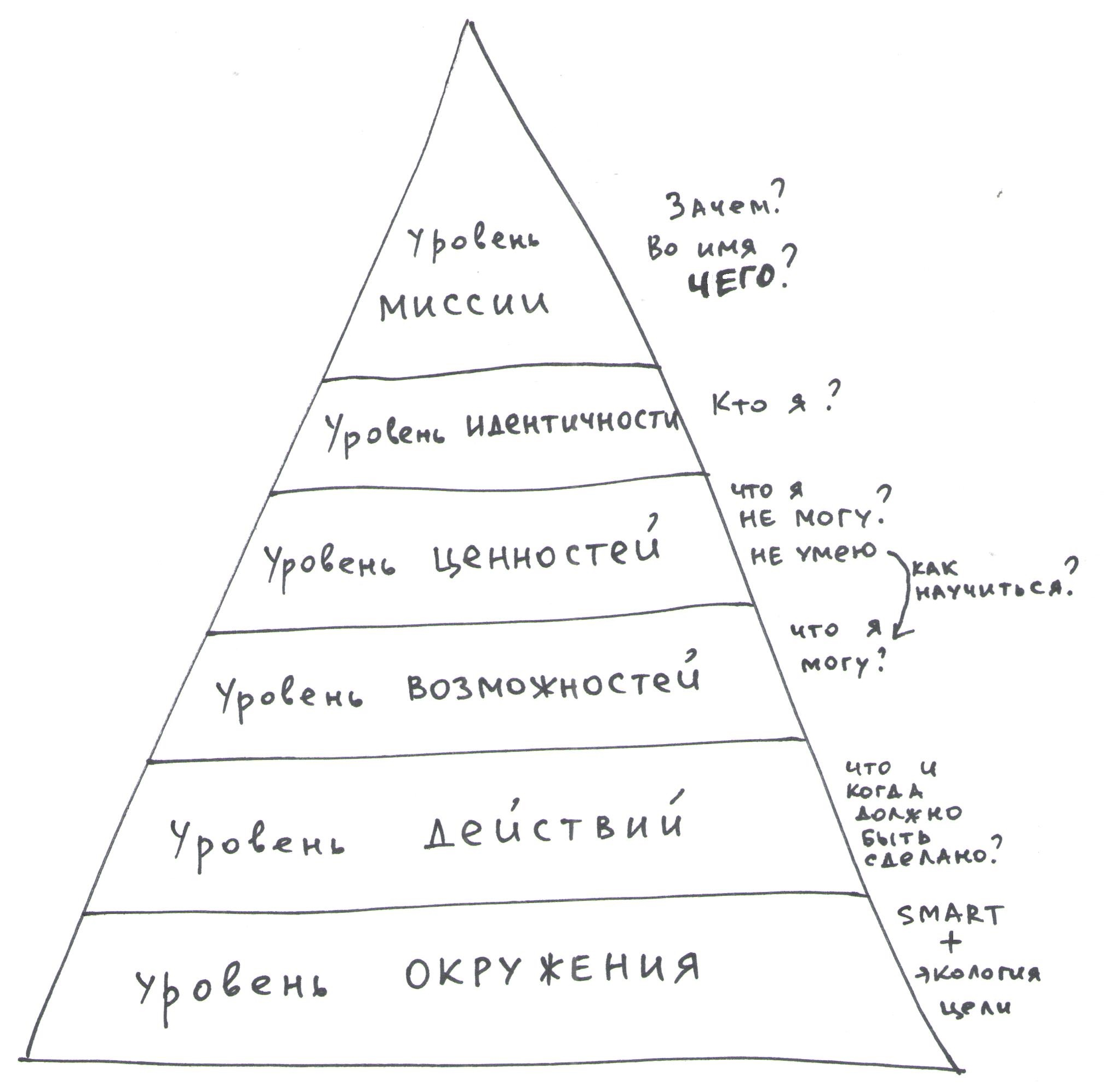 Уровень идентичности. Кто я буду, когда добьюсь цели? Просто автопродавец, владелец бизнеса или успешный человек? Кем я себя буду считать?