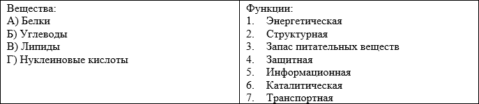 XI. Подпишите напротив названия вещества цифры, соответствующие функциям, выполняемым данным веществом в клетке (17 баллов):