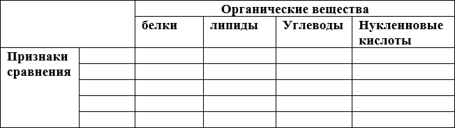 III. Проведите сравнительный анализ основных групп органических веществ клетки по строению и функциям (не менее 5-ти признаков сравнения). Результаты анализа оформите в виде таблицы (20 баллов):