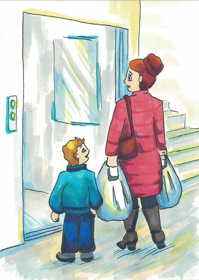 Так они сели с мамой в большой лифт и доехали до своего этажа.