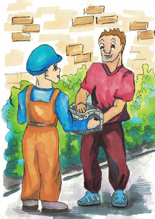 А потом мальчик решил поиграть в пожарных. Только вот не хватало одного – пожара. Тимур стащил спички из дома и поджег небольшой сноп сена в огороде. Попытка мальчика потушить разгоревшийся сноп в роли пожарного не удалась. Пожар стремительно набирал силу. Благо рядом оказался сосед, который поспешил на помощь. Вскоре подоспели и бабушка с дедушкой. Огонь потушили, но Тимур в неразберихе успел куда-то спрятаться. На этот раз никто не собирался его прощать. Рассерженный дедушка звал внука, но в ответ была тишина. А когда зашли домой, оказалось, что Тимур сидит и мультики по телевизору смотрит. Дедушка, ничего не сказав, схватил внука за шиворот и потащил его на улицу.