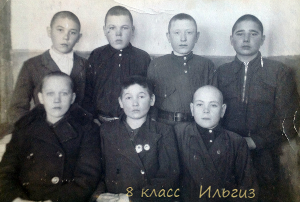 Многие фабрики и заводы со всеми работниками с фронтовой линии эвакуировали вглубь страны. В Уфу перебазировали много таких предприятий. Эшелонами привозили эвакогоспитали и мирных жителей со своими семьями и детьми. В январе 1941 г. наша семья приютила эвакуированную семью с маленькими детьми из Ленинграда. Нас стало 12 человек из них 8 детей в одной избе! Они разговаривали на русском языке, а мы – на татарском, каким-то образом понимали друг друга. Как говориться «в тесноте, да не в обиде». Весной 1942г. после снятия блокады Ленинграда они уехали домой. Первое время они писали нам письма, потом связь прекратилась. После них остались некоторые вещи, игрушки, мы их называли ленинградскими. Они были для нас в диковинку. Например, ёлочные картонные украшения, чтобы их стало больше, я разъединял их на две части, чтобы досталось и мне, и моей старшей сестре Зиле апе.