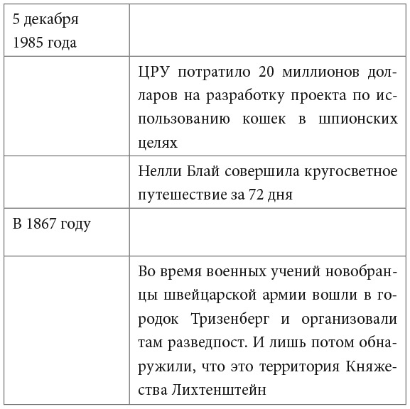 В этих упражнениях вы столкнулись с тремя видами информации: даты, лица и имена, случайные слова. Теперь нужно проверить, насколько хорошо вы их запомнили. Выполните следующие упражнения.